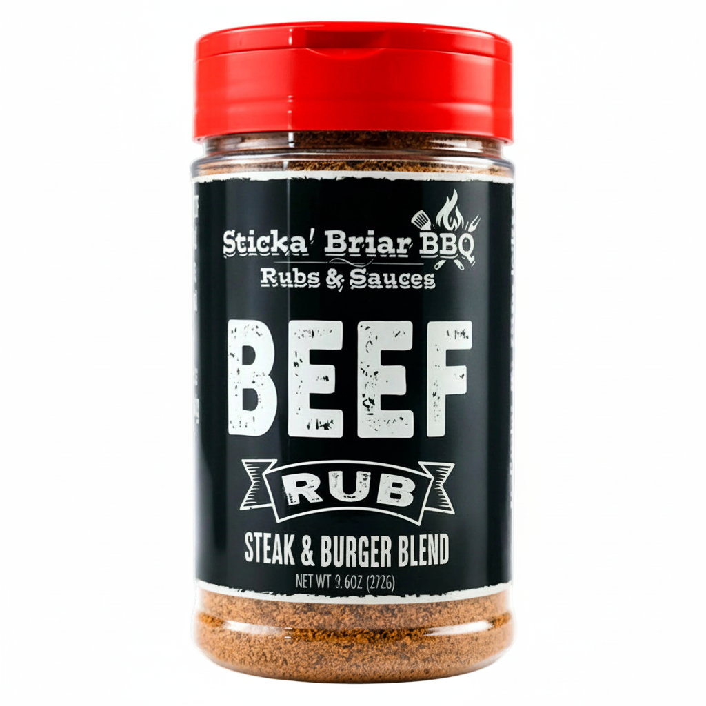- Bold, coarse rub designed to enhance premium beef